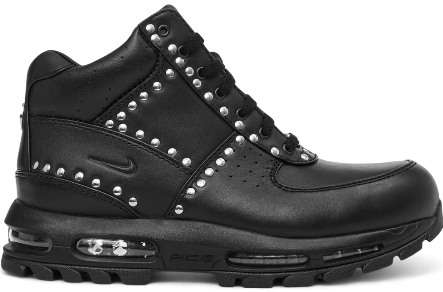 A Nike visszafogottan jelenik meg: egy apró Swoosh-logó domborodik a sarokrészen, megőrizve a modell robusztus eredetét. A masszív konstrukció látható Air párnázáson nyugszik, ami a Nike All Conditions Gear vonal jellegzetes megjelenése, így a streetwear hangulat zökkenőmentesen találkozik a kültéri funkcionalitással.