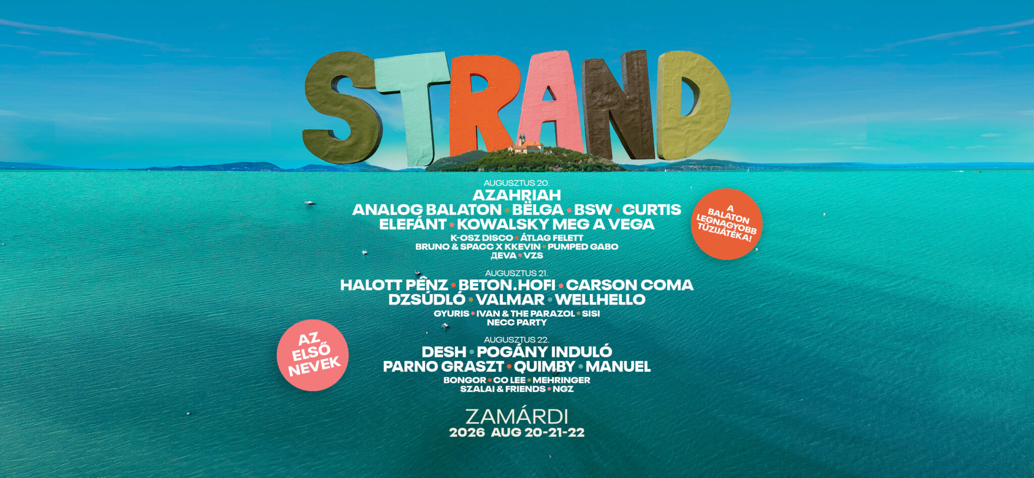 Bejelentették a Strand Fesztivál első neveit. A Balaton parti rendezvény 2026-os különlegessége az lesz, hogy két, egymással egyenrangú nagyszínpad épül Zamárdiban, hogy három napon át a magyar zene „legnagyobb ünnepe” valósulhasson meg.