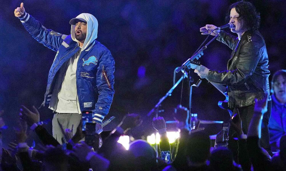 Eminem váratlanul feltűnt Jack White mellett egy detroiti amerikai futball meccs félidei showjában